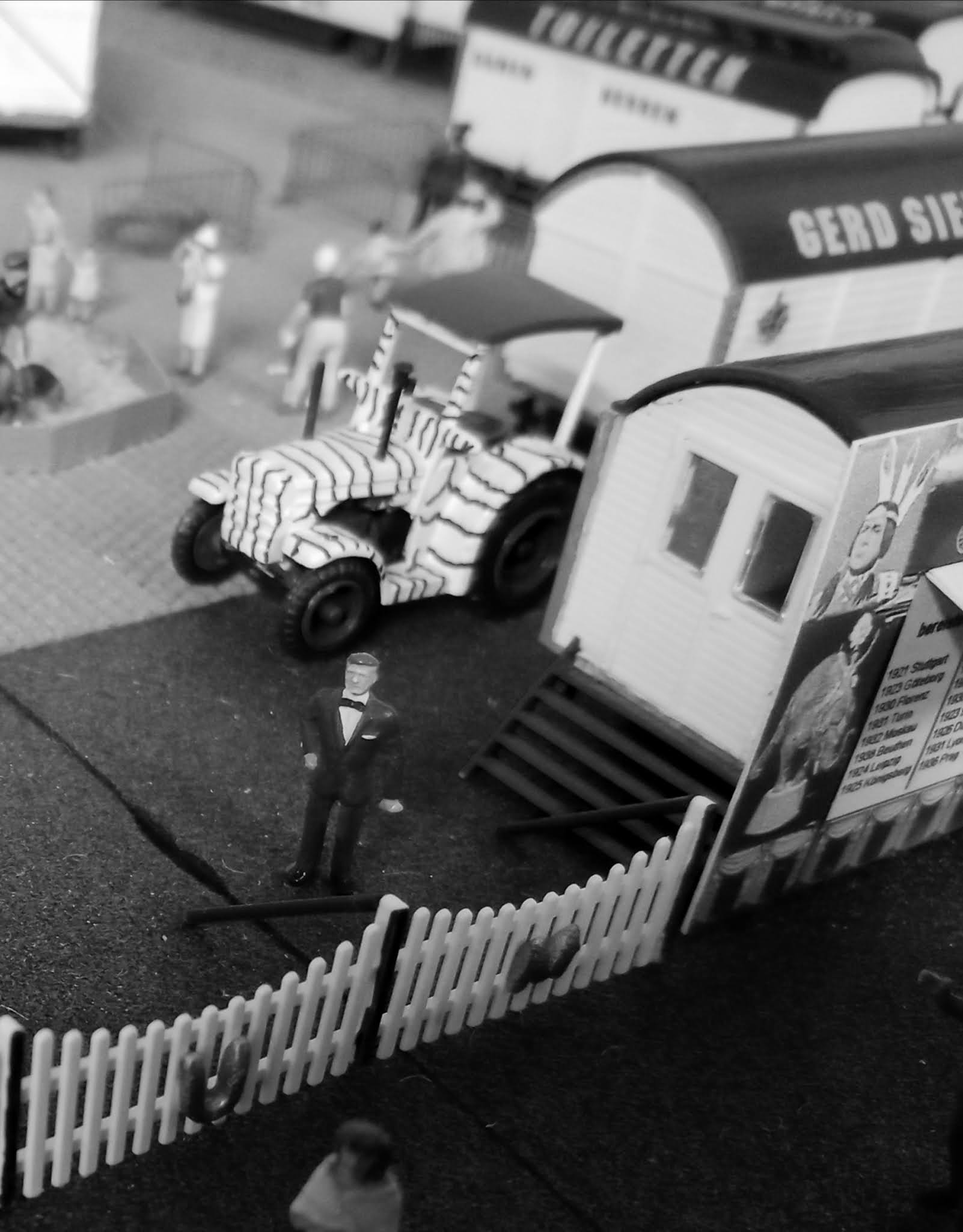 Neben dem Circus Barum Modell hat Christof Lauer zudem noch seine eigene "Magier Christof Lauer" Schau in 1 :87 nachgebaut. Die Illusionen, als auch den Renault Trafic mit Anhänger gibt es so auch in der "Realität".