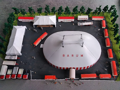 Norman Vogler arbeitet seit 30 Jahren an seinem Circus BARUM Modell im Maßstab 1:24 und zeigt nun stolz Aufnahmen seiner schönen Modelle. Die Wagen sind bis auf wenige Ausnahmen komplett im Eigenbau entstanden und auch das Chapiteau wurde von Norman Vogler selber gebaut. Das Chapiteau, der Zaun, sowie einige Wagen, wie z.B. Kasse und Generatorwagen, sind beleuchtet und lassen bei Dunkelheit fast richtige Circusatmosphäre aufkommen.